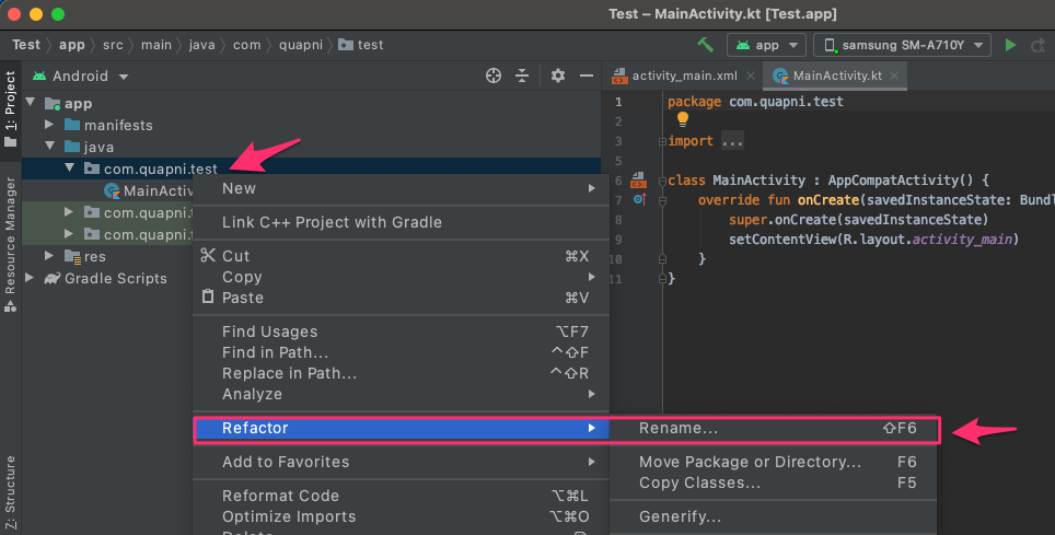 因项目需要,需更换项目的包名,id,经过一番google 现找到如下资料,整理一下展示给大家参考。 如果臨時要修改專案的名稱僅修改資料夾名稱是無效的,內部的 Package Name 是在建立项目時即設定了。因此本文教會教各位如何在 Android Studio 將所有的项目路徑一並重新命名。